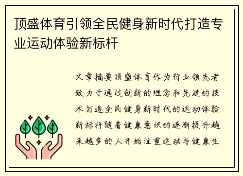 随着科技的进步和体育行业的不断发展,运动赛事与运动趋势逐渐成为全球关注的焦点。大象体育作为一家致力于提供最新赛事资讯和运动趋势分析的平台,正在带领我们深入了解各类体育赛事的动态以及未来运动趋势的变化。...